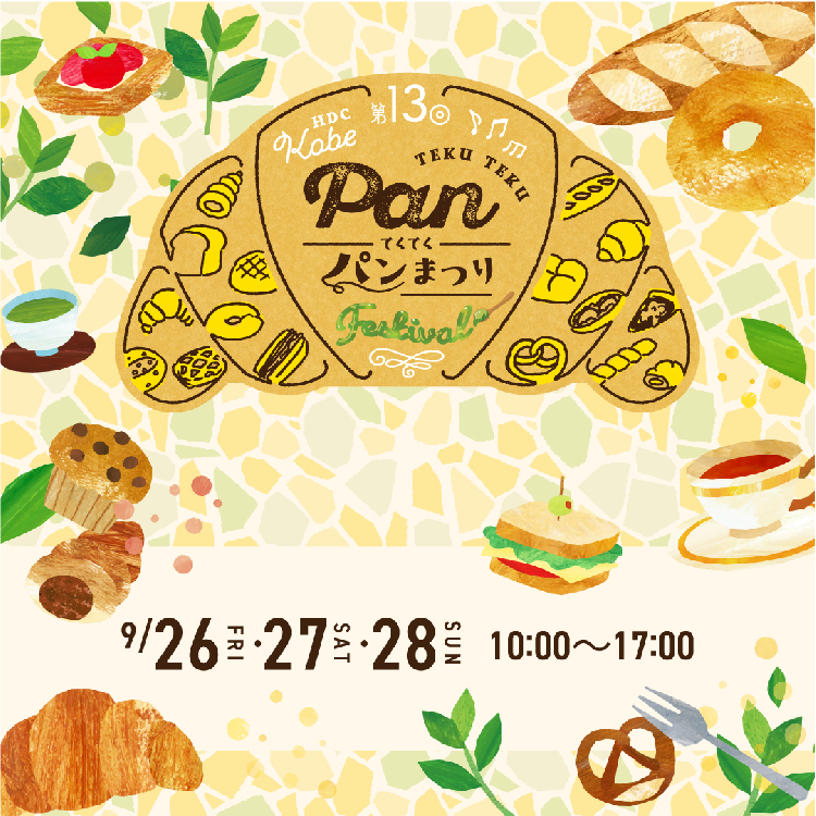 HDC神戸にて「第13回 てくてくパンまつり」が、2025年9月26日(金)から9月28日(日)まで開催されます。