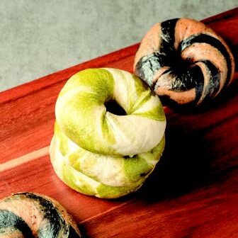 京都宇治抹茶を使用した、抹茶×プレーンのマーブルベーグル。
